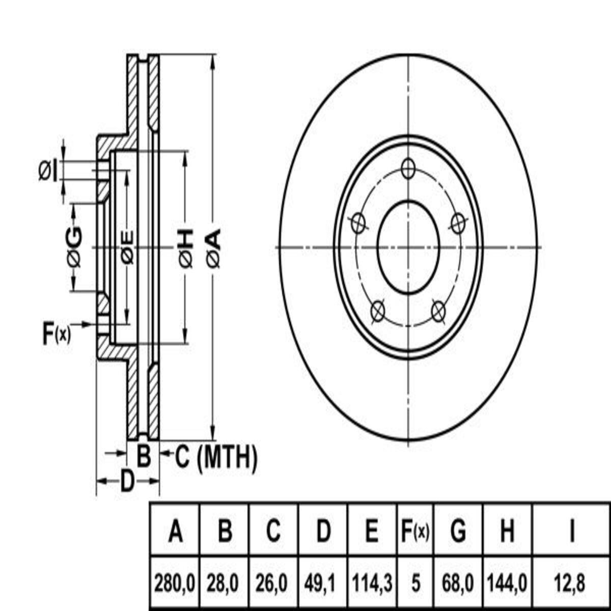 FREN DISK ON HAVA KANALLI 280-5 ( NISSAN: PRIMERA P12 XTRAIL MAXIMA 00 - 10 )